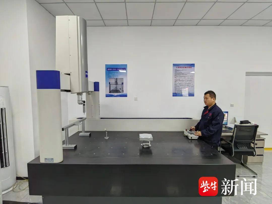 时刻东谈主员闵文健正在用三坐标测量仪对园内企业的机加工居品进行圆度检测